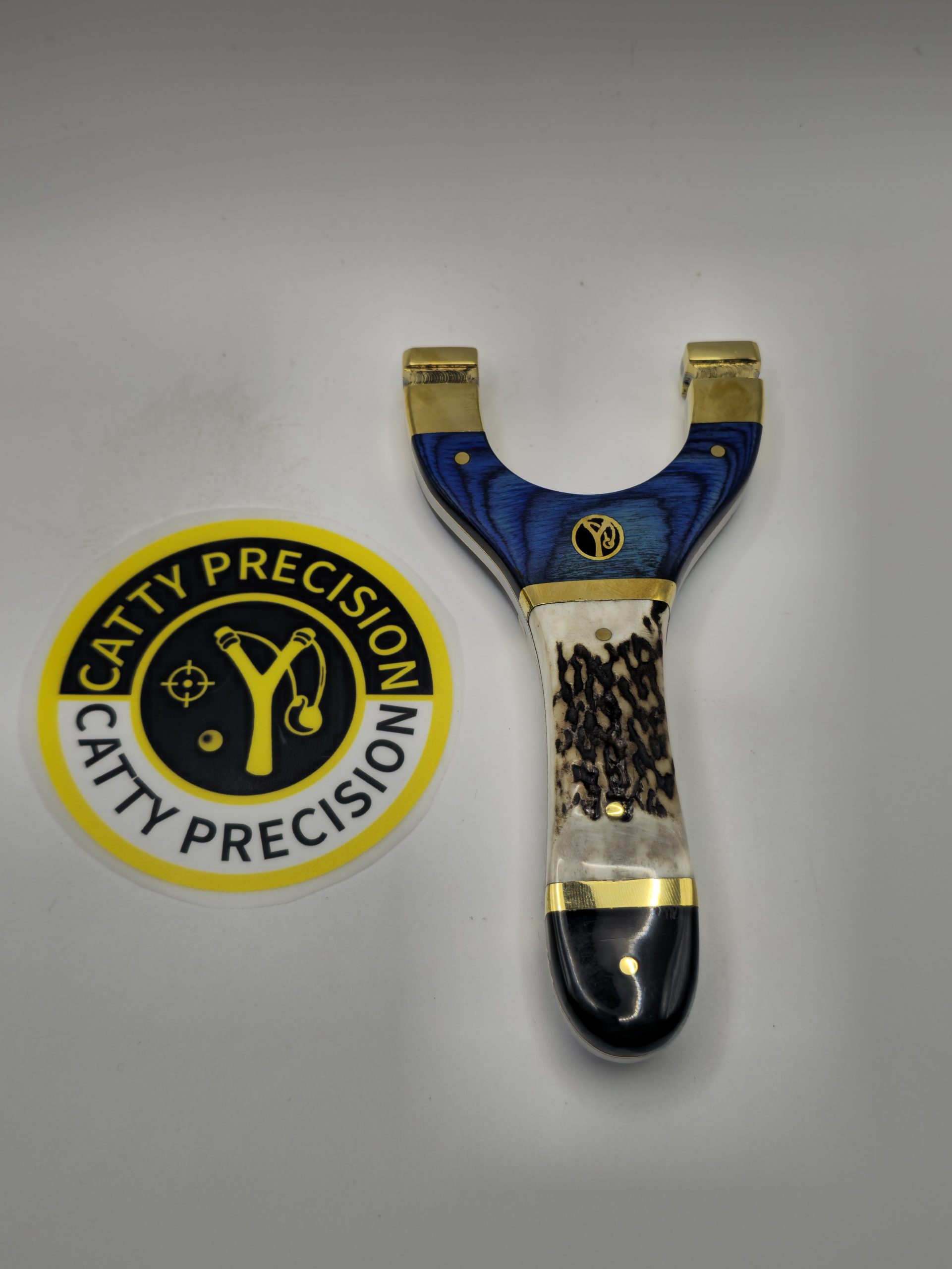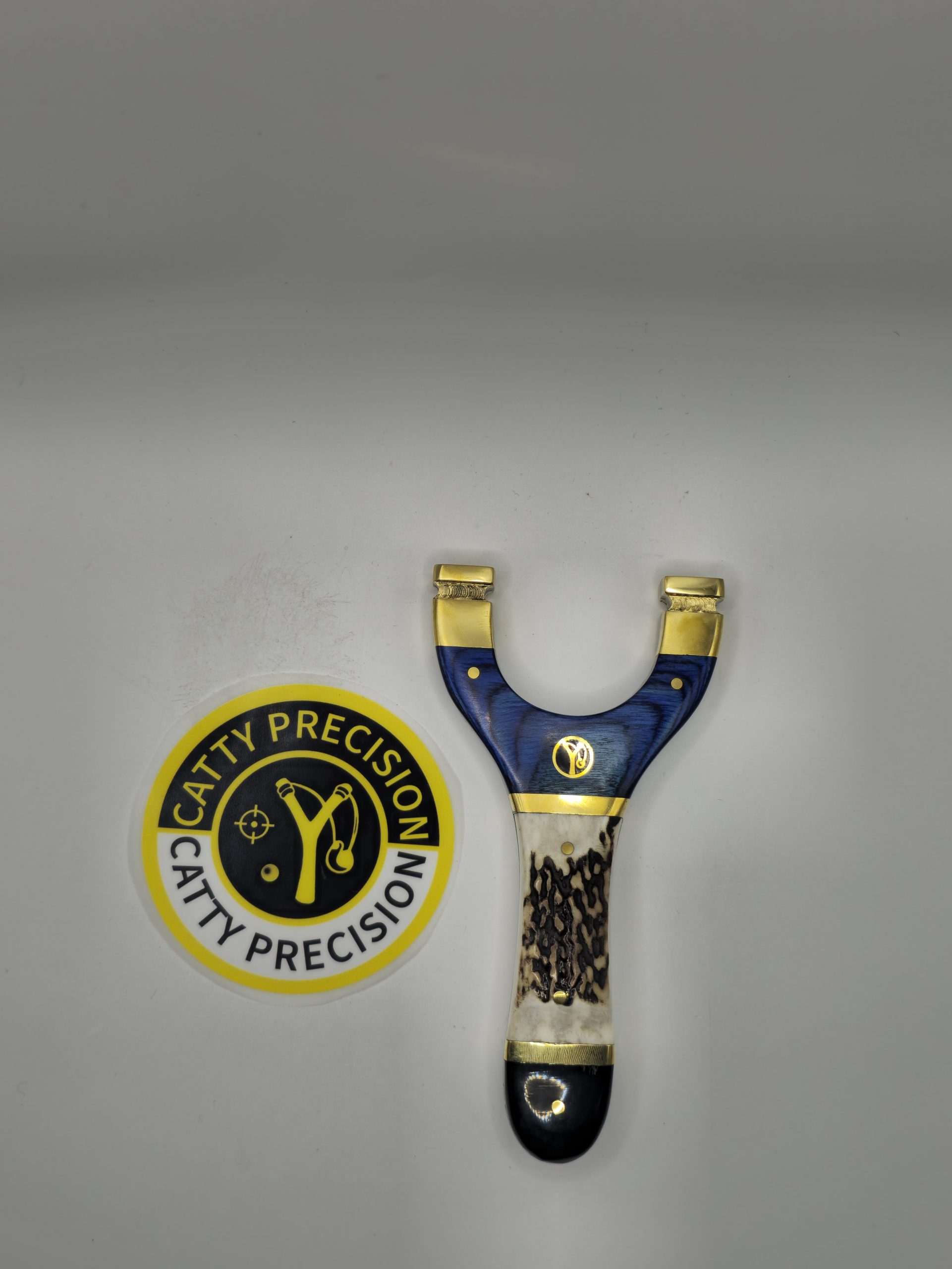 A true work of craftsmanship and precision — this Custom Handmade Slingshot combines blue stained hardwood, deer antler, and buffalo horn for a stunning and functional shooting experience 🎯