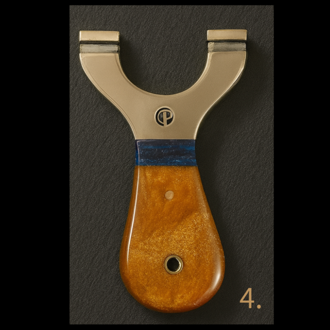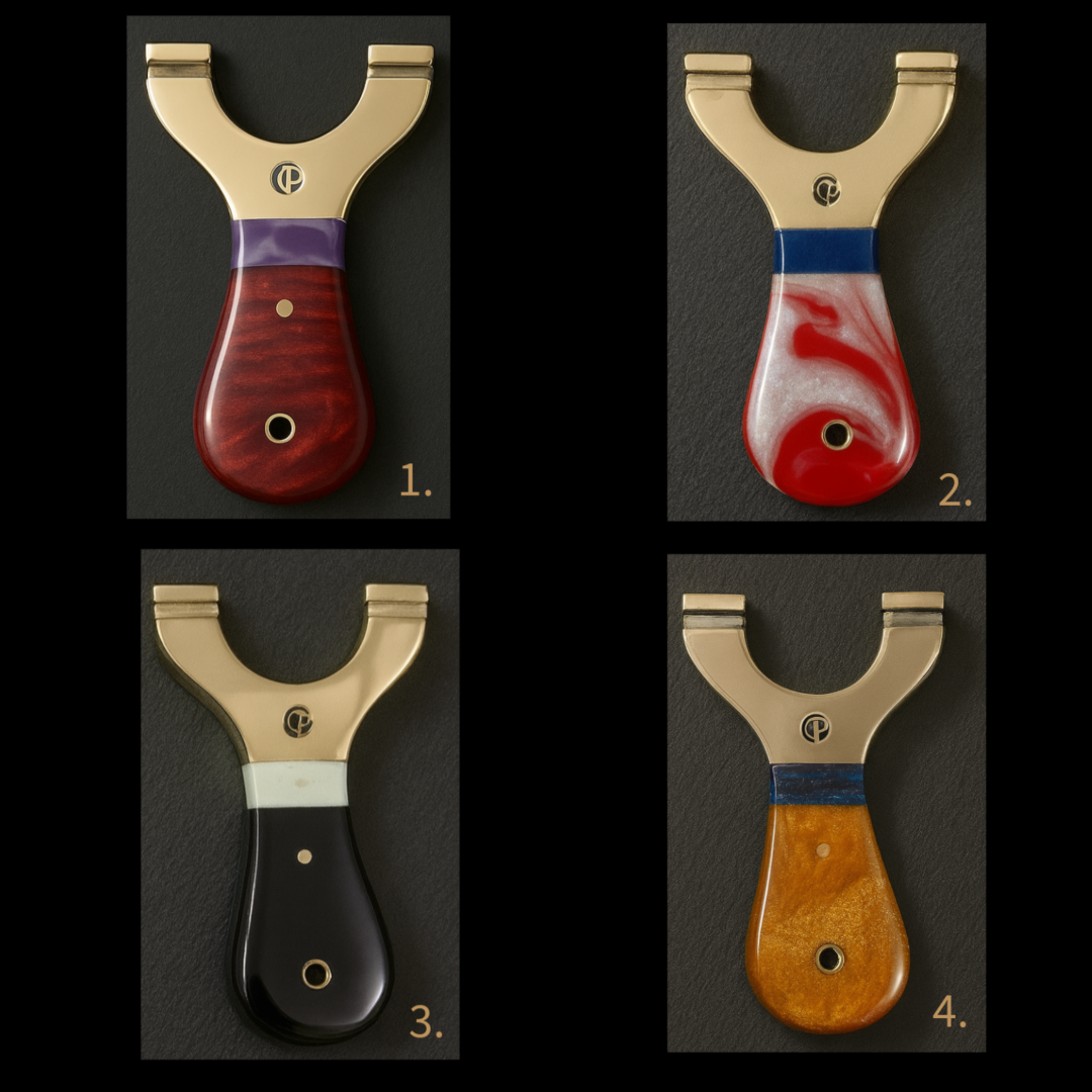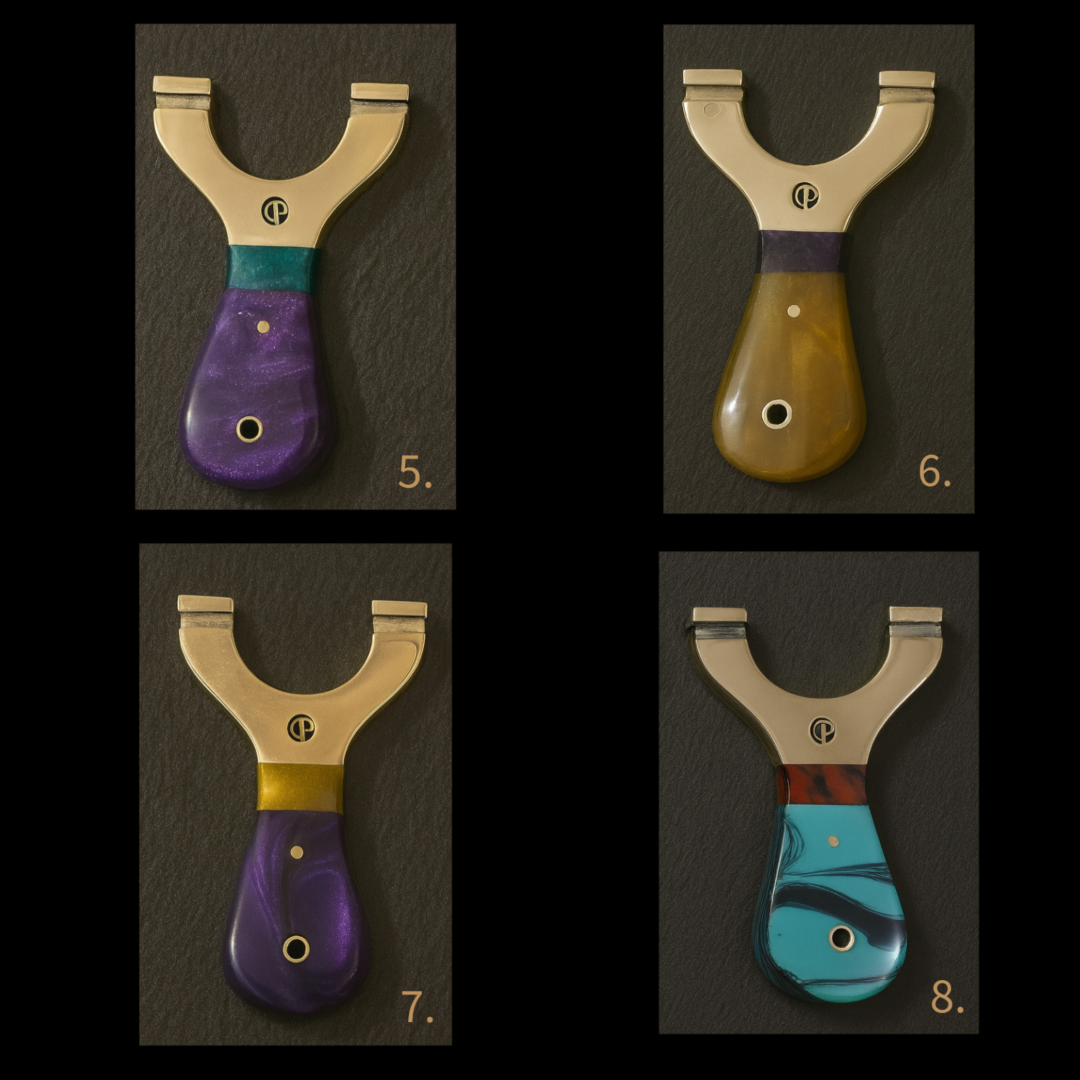 π₯ PRE-ORDER Due in 12/12/2025 β MINI Custom Round Brass-Top Slingshots with Curved Resin Handles