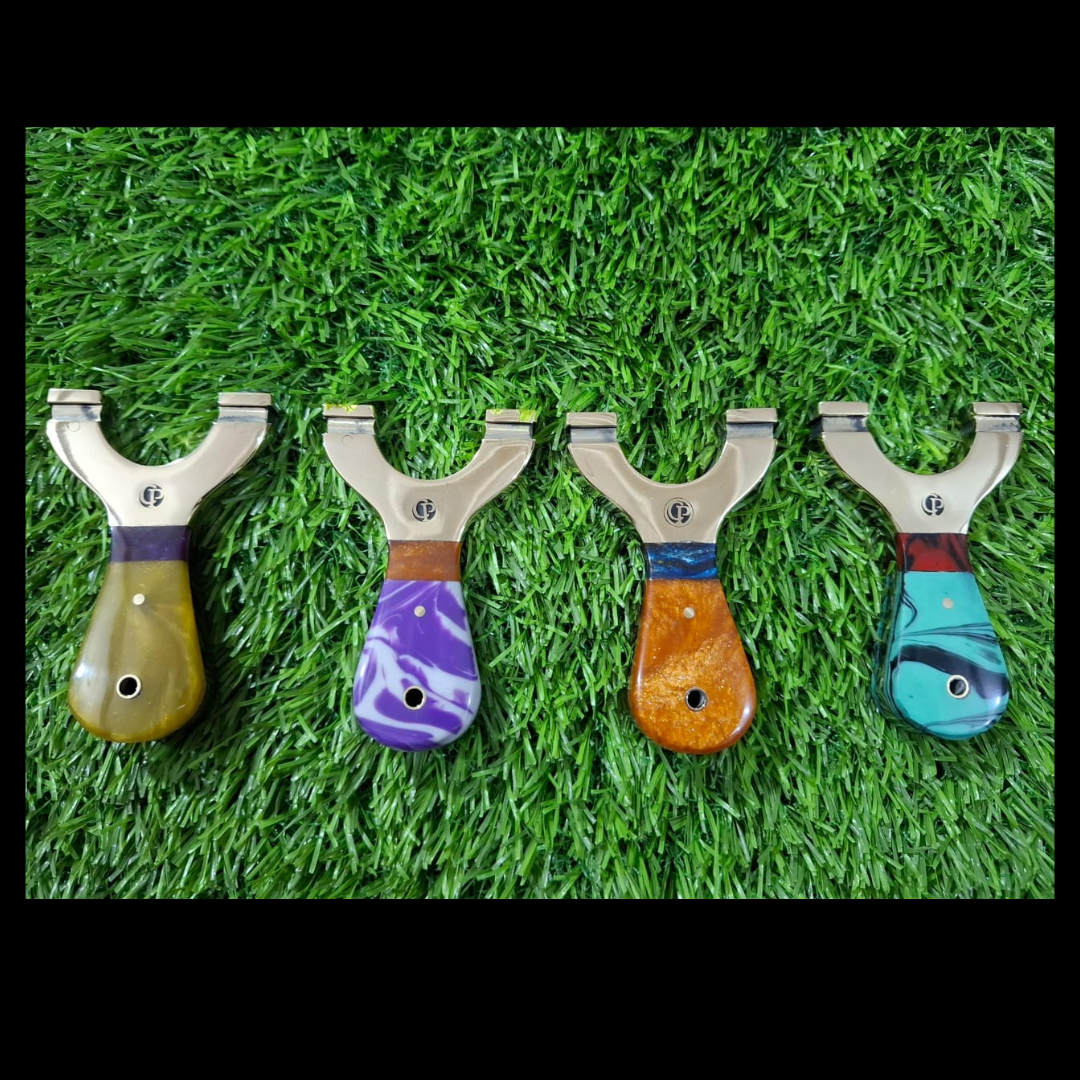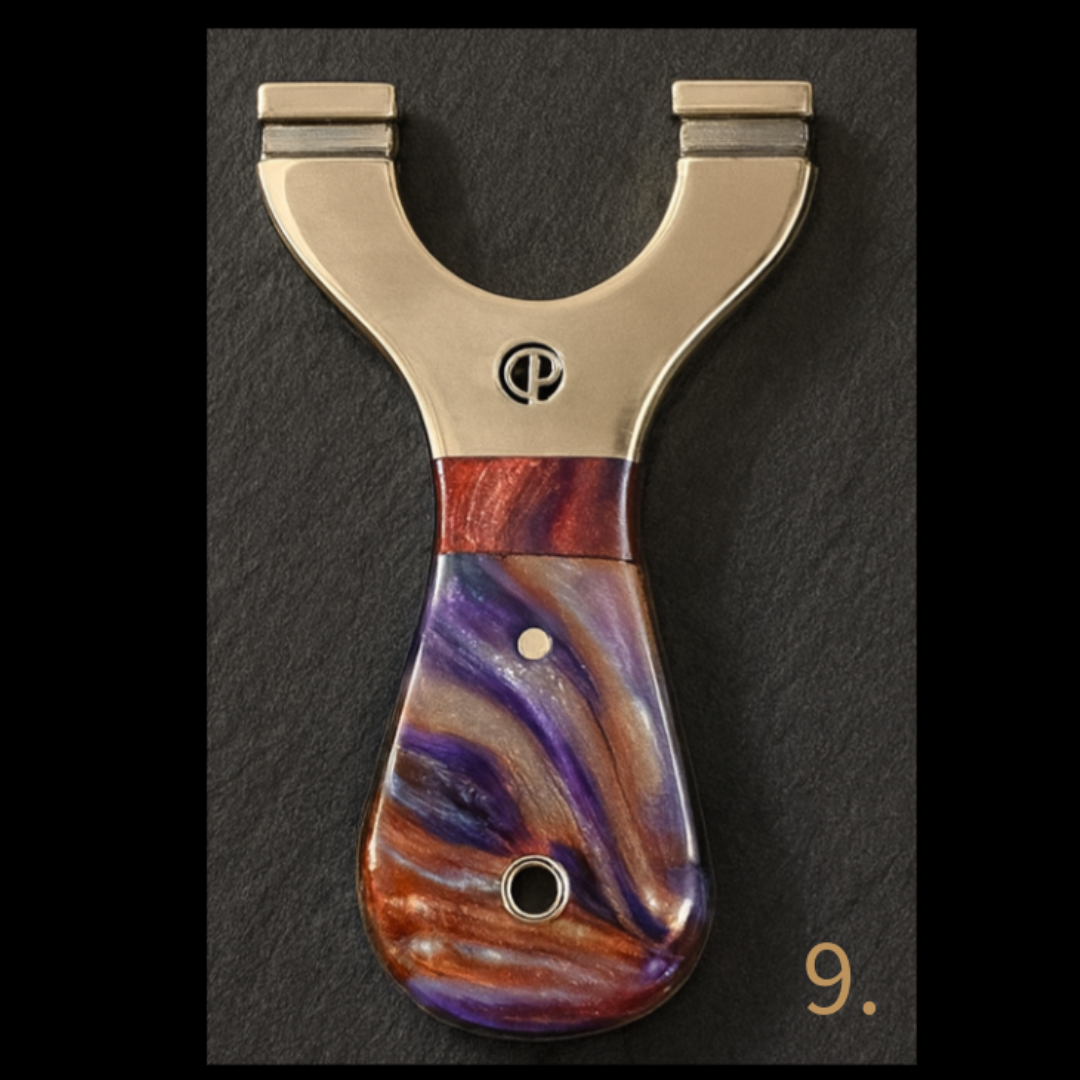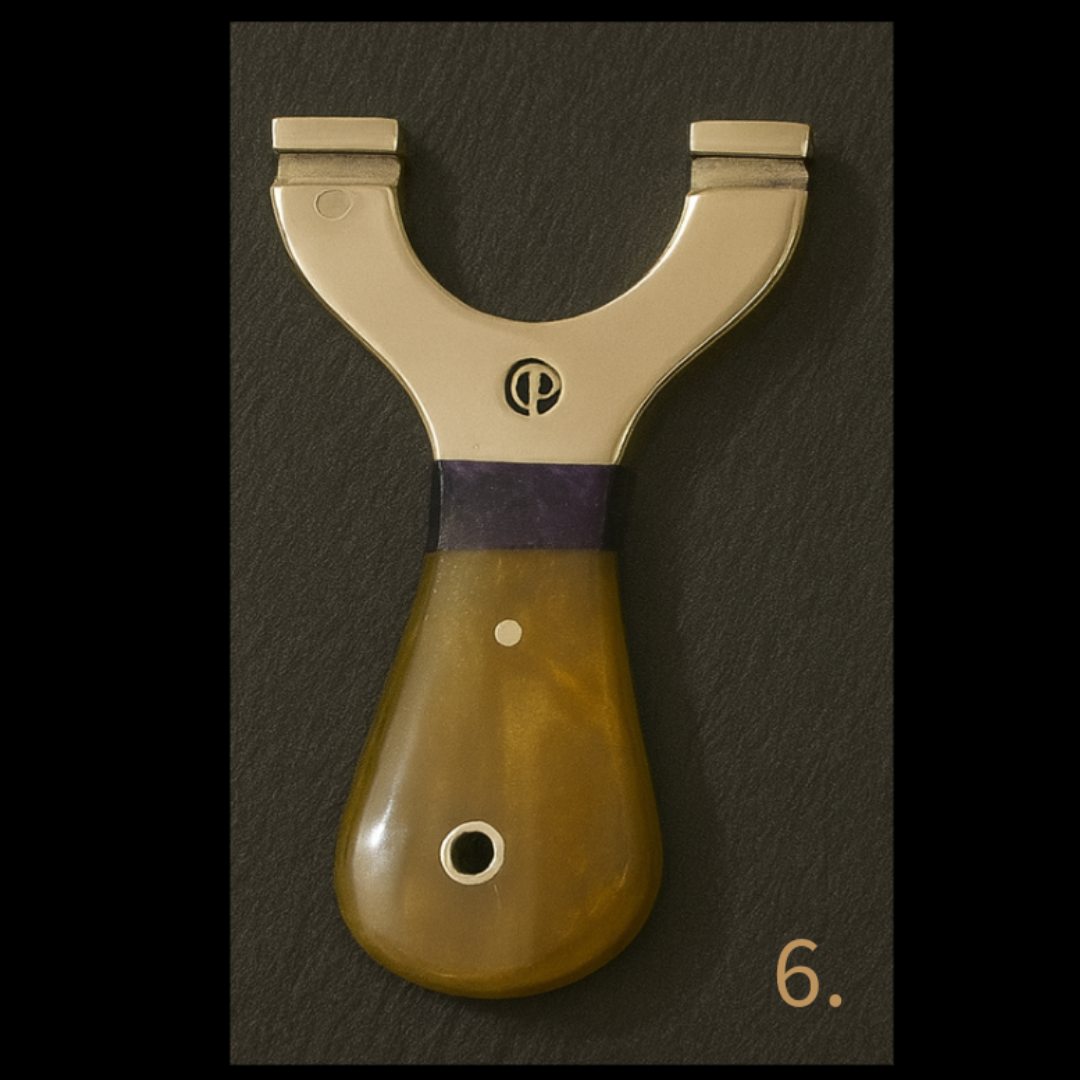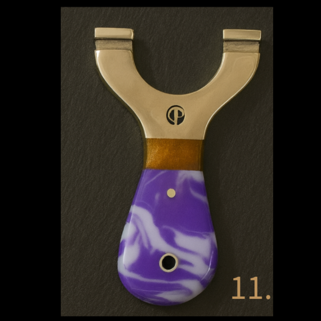 π₯ PRE-ORDER Due in 12/12/2025 β MINI Custom Round Brass-Top Slingshots with Curved Resin Handles