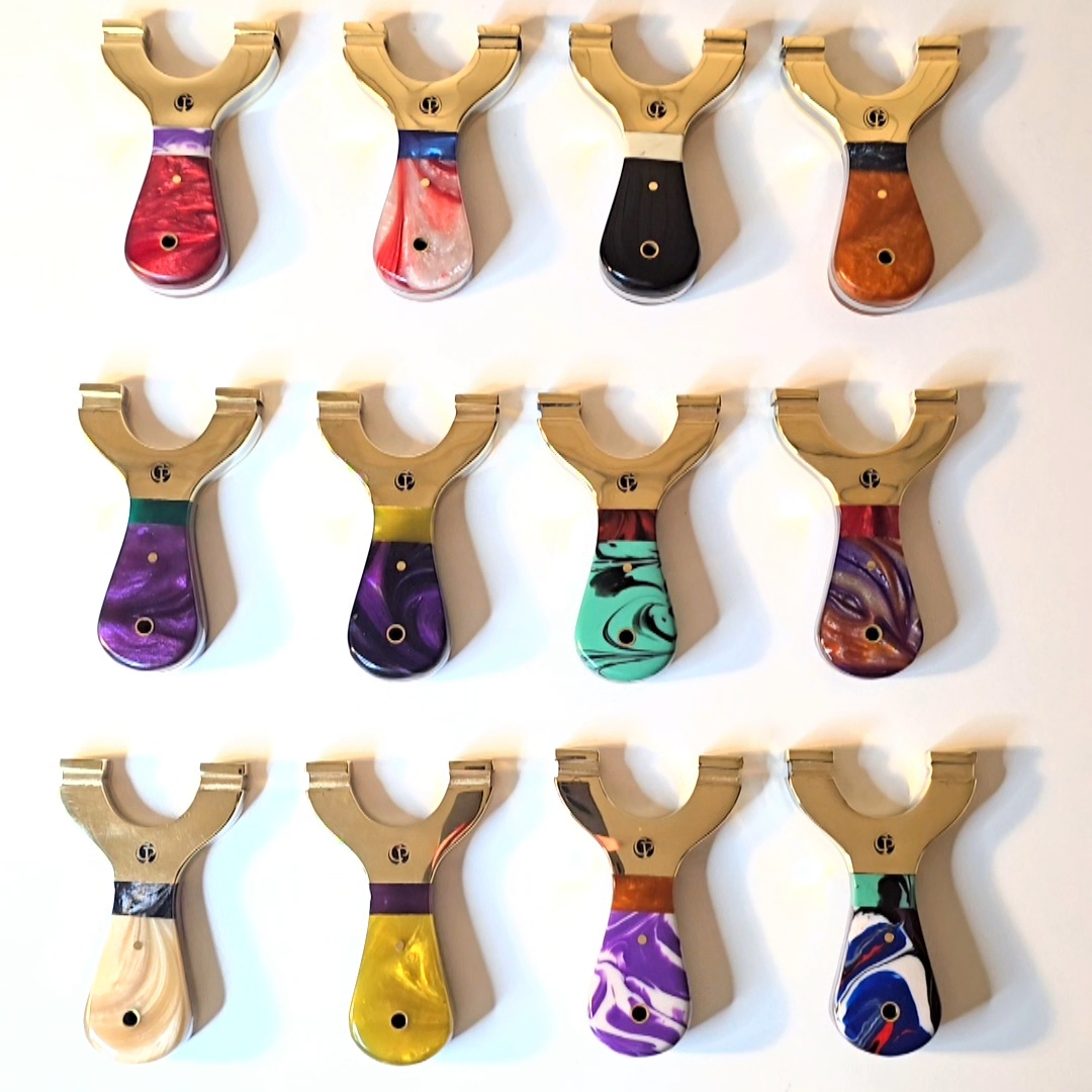 MINI Custom Round Brass-Top Slingshots with Curved Resin Handles