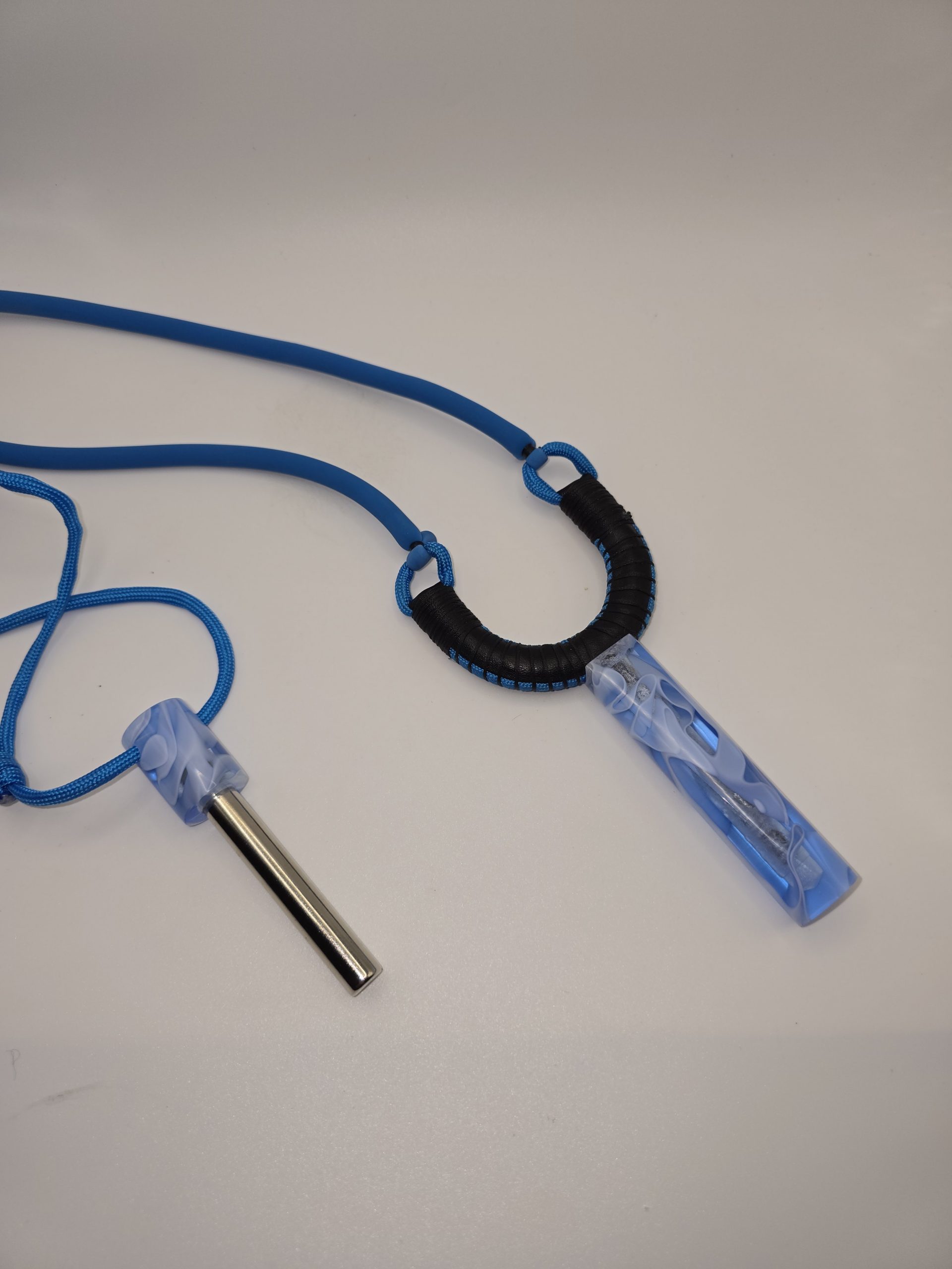 • Custom handmade gypsy slingshot with blue, black, white & clear resin handle